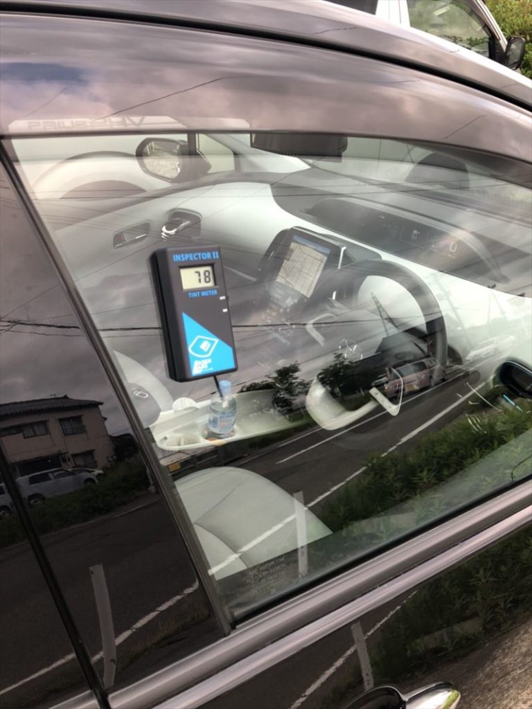 車検対応のIRカットフィルムで施工しましたが車種ごとにガラスの透過率が違うため、